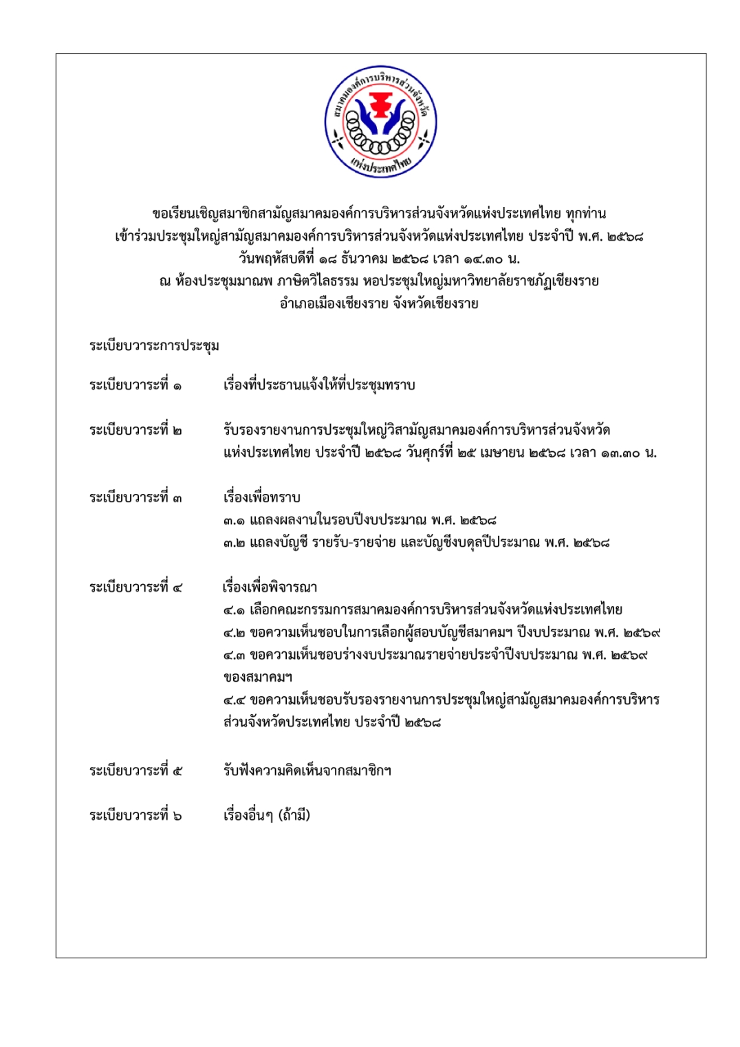 ข้อบังคับสมาคม อบจ. แห่งประเทศไทย 2567
